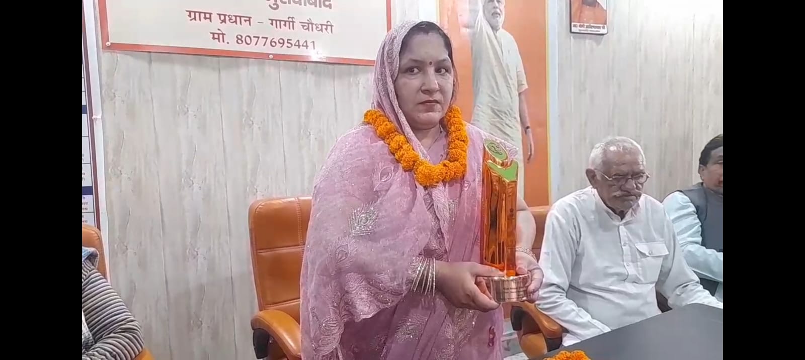 ग्राम प्रधान गार्गी चौधरी का मिठाई खिलाकर किया गया स्वागत
