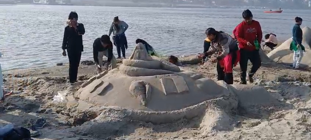 वाराणसी। गुरु राम छाटपार के 81वें जन्म दिवस के अवसर पर 19 जनवरी 2025 को ‘राम छाटपार शिल्पन्यास’ भारत द्वारा माँ गंगा की रेत पर एक दिवसीय कार्यशाला का आयोजन हुआ। कार्यक्रम माँ गंगा के तट पर निकले विस्तृत रेत के टापू पर आयोजित हुआ। 400 से 500 प्रतिभागी कलाकार रेत पर रेत द्वारा ही नवीन प्रयोगात्मक एवं स्वतन्त्र मूर्तिशिल्प की रचना में सृजनरत रहे। जो अपने आप में रोमांचक एवं चुनौतीपूर्ण था। इस कार्यक्रम में स्थानीय एवं देश के अन्य राज्यों से पधारे कलाकारों की कला दक्षता को सृजित करने एवं प्रदर्शित होने का अद्भुत अवसर देखने को प्राप्त हुआ। विभिन्न वर्गों के कलाकार पूरी तन्नयता से अपनी कलाकृति के प्रति समर्पित रहे।