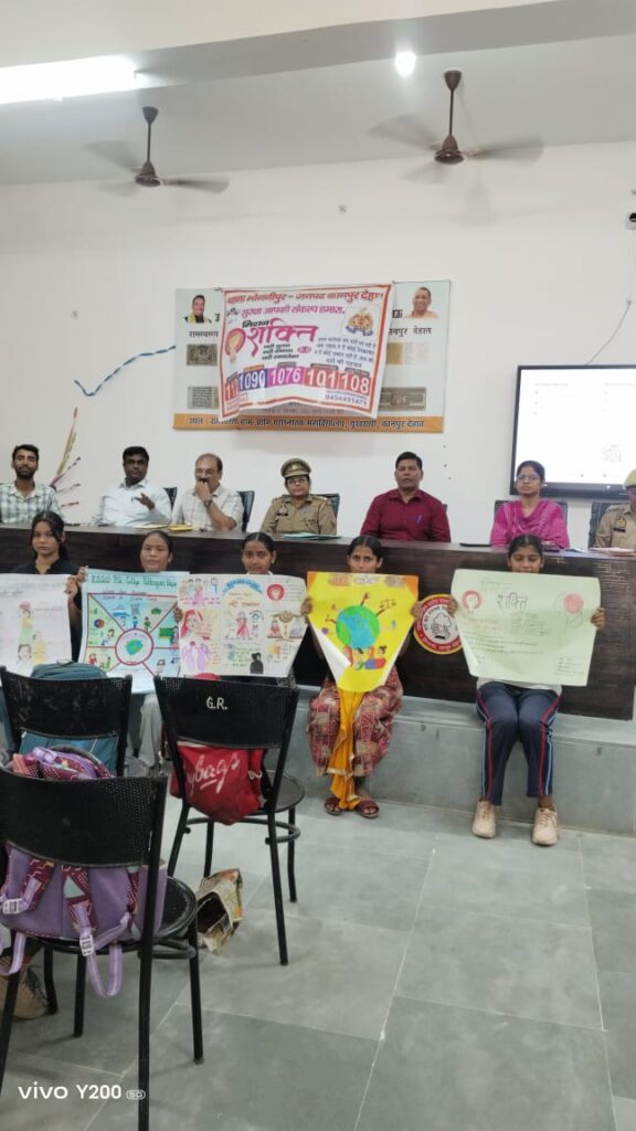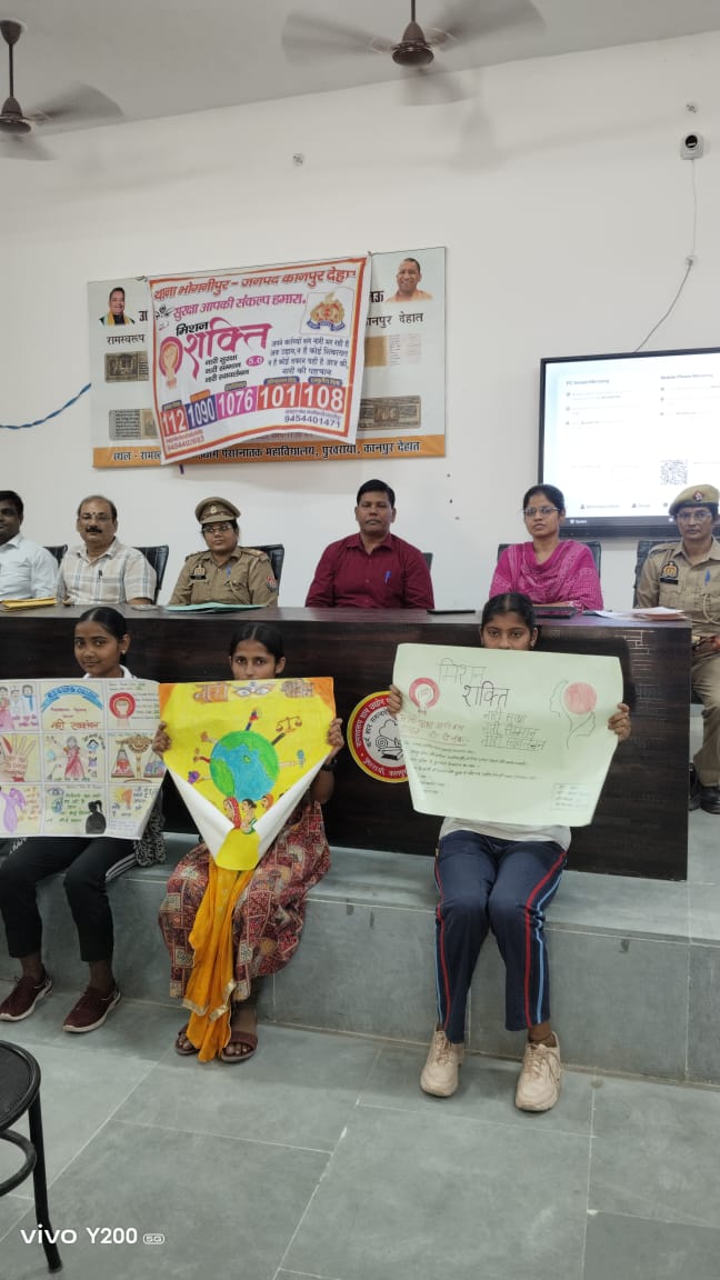 पुखरायां कानपुर देहात कस्बा स्थित रामस्वरूप ग्राम उद्योग परास्नातक महाविद्यालय पुखरायां कानपुर देहात में आज मिशन शक्ति 5.0 के तहत पोस्टर प्रतियोगिता का आयोजन किया गया जिसमें छात्राओं ने महिला स्वावलंबन, महिला सुरक्षा एवं महिला सम्मान को सुंदर चित्रों के माध्यम से प्रदर्शित करने का प्रयास किया प्रतियोगिता में सबसे अच्छी प्रस्तुति कर अंतरा शुक्ला प्रथम स्थान पर रही, सहाना खातून द्वितीय स्थान पर तथा नैंसी एवं मरियम संयुक्त रूप से तृतीय स्थान पर रही। इस अवसर पर सुमन दीक्षित महिला थाना इंचार्ज एवं स्नेहा यादव कांस्टेबल ने छात्राओं को जागरूक करने के लिए विभिन्न हेल्पलाइन नंबर से संबंधित नुक्कड़ नाटक एवं वीडियो इलेक्ट्रॉनिक पैनल के माध्यम से प्रसारित किया।