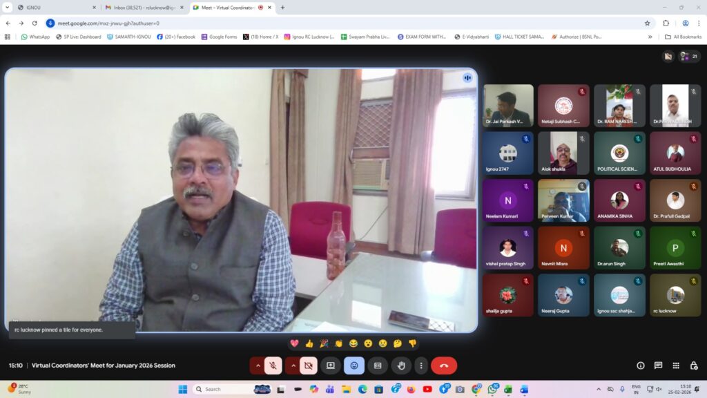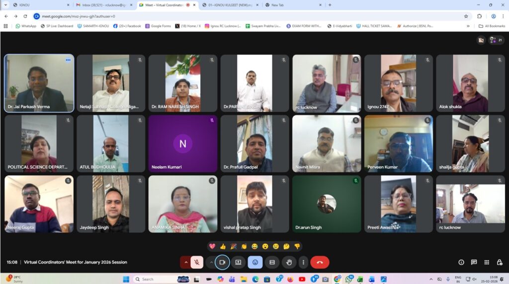 इग्नू द्वारा अध्ययन केंद्र के समन्वयक प्राचार्य एवं सहायक समन्वयक के साथ वर्चुअल मीटिंग की।