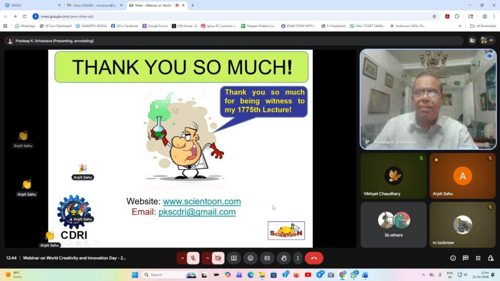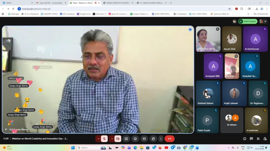 इग्नू के क्षेत्रीय केंद्र, लखनऊ ने विश्व रचनात्मकता एवं नवाचार दिवस पर कराया वेविनार