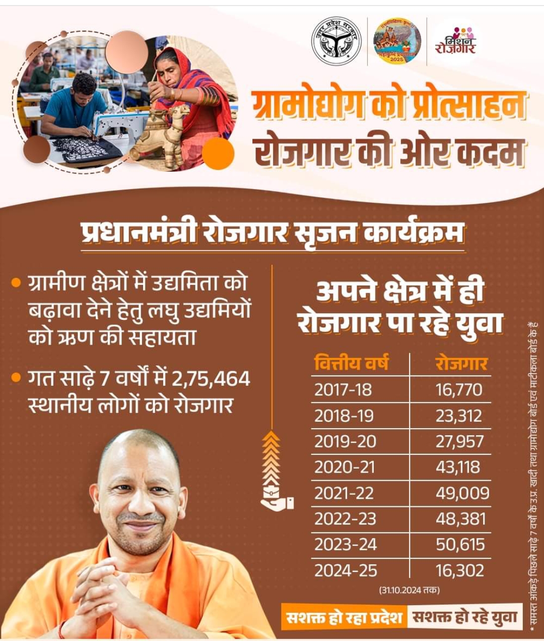 #UPCM श्री MYogiAdityanath जी के निर्देशानुसार, उत्तर प्रदेश के ग्रामीण क्षेत्रों में उद्यमिता को बढ़ावा देने हेतु लघु उद्यमियों को विभिन्न योजनाओं के माध्यम से वित्तीय सहायता उपलब्ध कराई जा रही है। इससे स्थानीय स्तर पर रोजगार के नए अवसर बढ़ रहे हैं।
